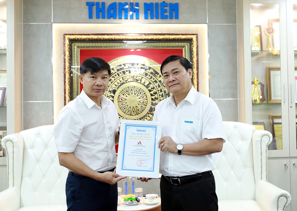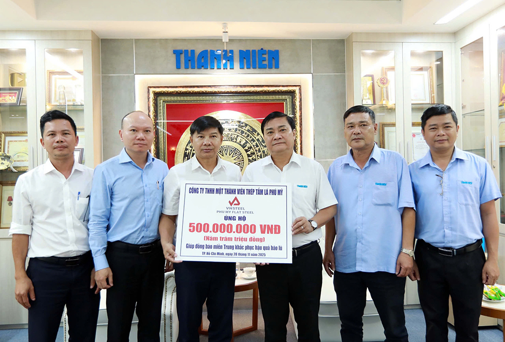 Sáng 28.11, tại tòa soạn Báo Thanh Niên, nhà báo Nguyễn Ngọc Toàn – Tổng biên tập Báo Thanh Niên, đã tiếp nhận biểu trưng số tiền 500 triệu đồng từ ông Nguyễn Tấn Hoành – Tổng giám đốc Công ty TNHH một thành viên Thép tấm lá Phú Mỹ (VNSTEEL).